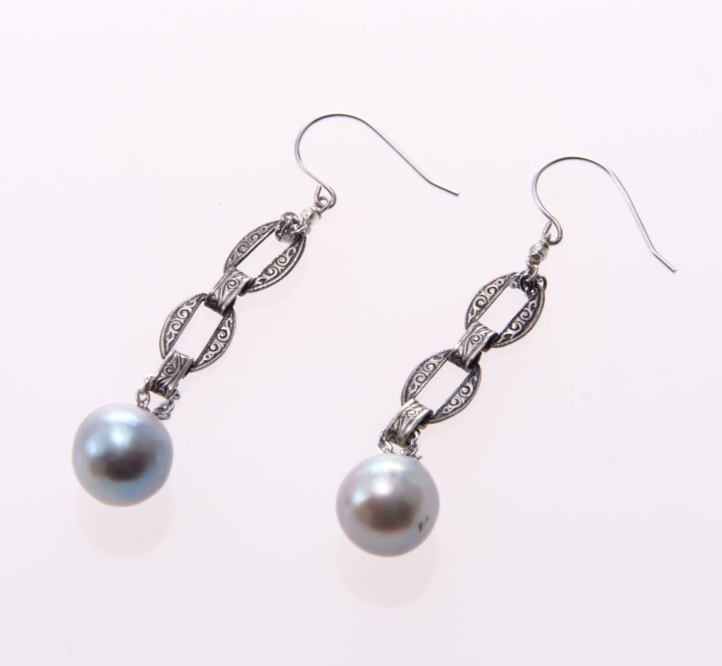 ロンドンで買い付けた、1890年代アンティークチェーンと、愛媛県宇和島産あこや真珠を組み合わせたピアスです。